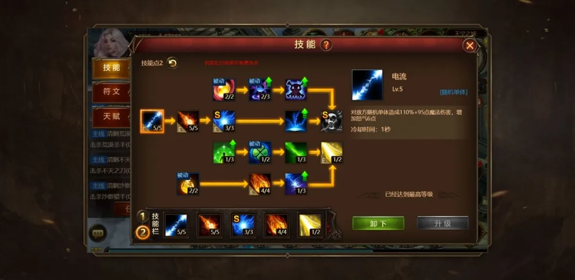 电流(冷却时间1秒):对敌方随机单体造成110%+95点魔法伤害,增加怒气6点;