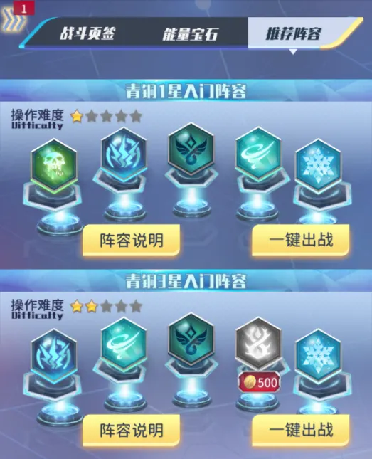新手入门时用最基础的阵容就能应对大部分的战斗场景。