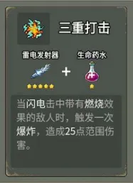 技能:当闪电击中带有燃烧效果的敌人时,触发一次爆炸,造成25点范围伤害