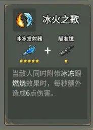 技能:当敌人同时附带冰冻跟燃烧效果时,每秒额外造成6点伤害