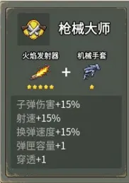 4、被动效果里,机械手套也是一定要选择的,还可以和火焰发射器合成机械大师。