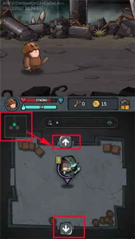 2、游戏下方左上角显示为地图,其中的方向键按钮可切换不同的地图;