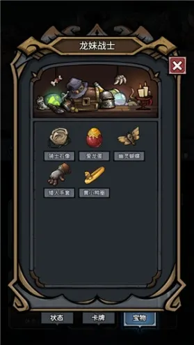 核心宝物:石中锤(战斗开始时增加攻击)、骑士之刃(使用攻击卡时提升攻击力)、扶虎斧(敌方使用非攻击卡增加攻击力)