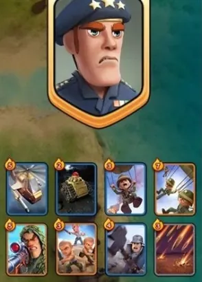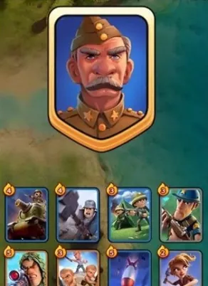 自己携带两张伞兵加上将军不断部署的伞兵,不论是骚扰还是爆发都很强的一套卡组。前期只要尽全力防守然后找机会放伞兵来不断消耗对方血量即可,随着战区推进针对性更换几张防守卡也能活跃于后期战场。