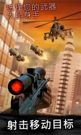 游戏中我们扮演一个狙击手角色,在不同地点要完成领取的击杀任务,完成任务后根据表现得到金币和经验奖励。