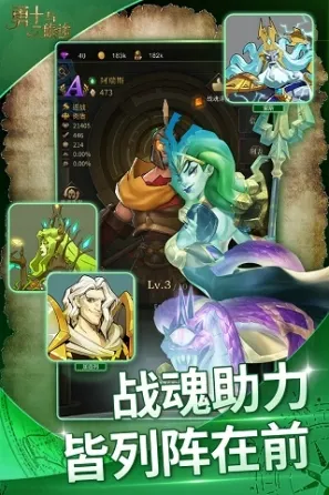 游戏元素丰富多样,不仅有遗迹、森林、古堡等多种场景,还内置千套装备和技能体系,不同属性的战魂角色,打不完的特色副本,开启脑洞搭配属于自己的策略组合吧,自由上阵,打破神界壁垒,与神同行。