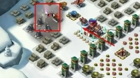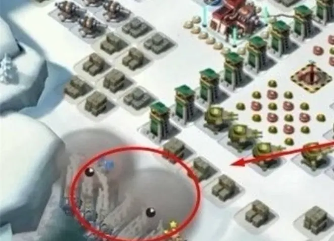 既然是躲角阵型,那么阵型的中心当然主要的是靠向角落的啦,大本营的主要是靠向后面一点的,周围是一些防御设施,之后就是各类建筑物,在建筑物之间又是一些地雷等等,效果还是不错的哦,玩家们可以尝试一下。