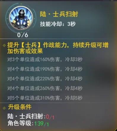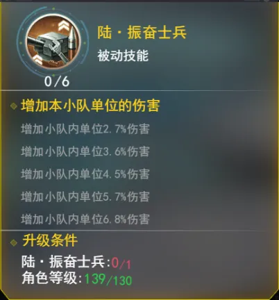 技能5:埋伏战术-被动提升本军团11.3%攻击力,20%暴击率