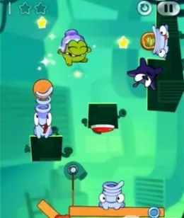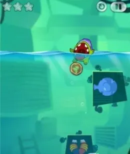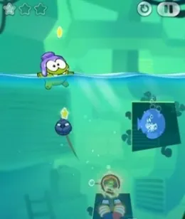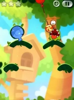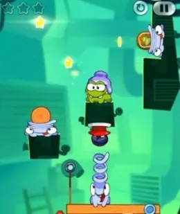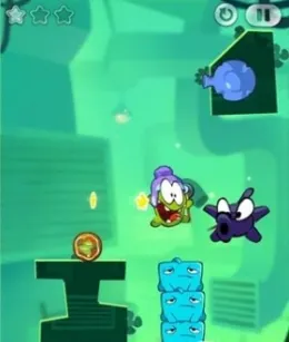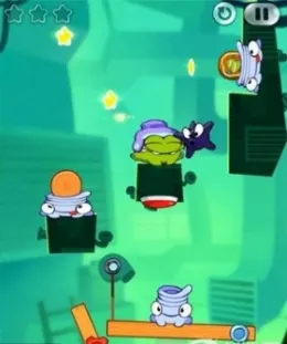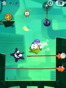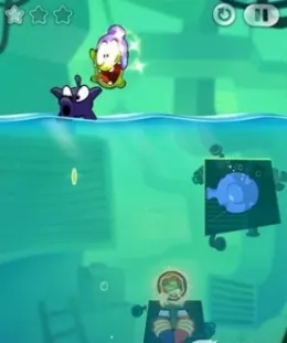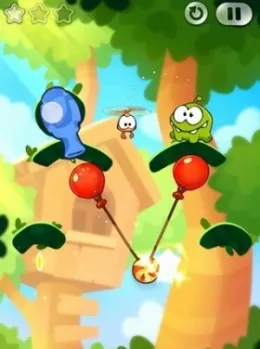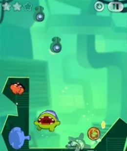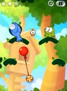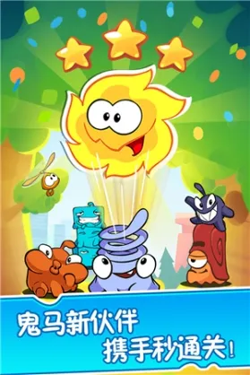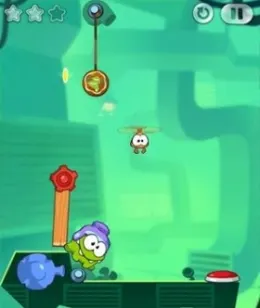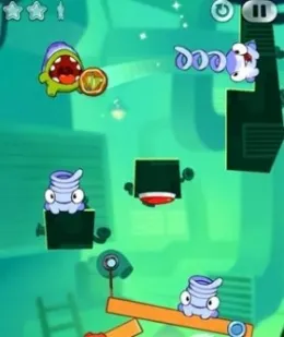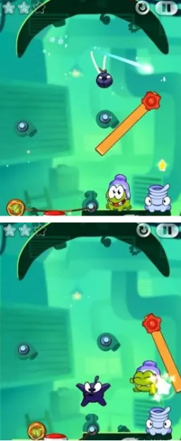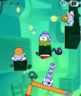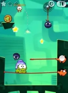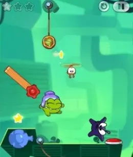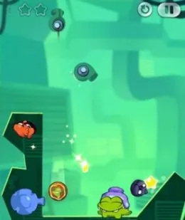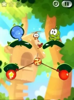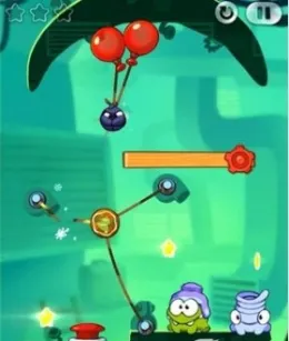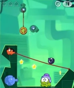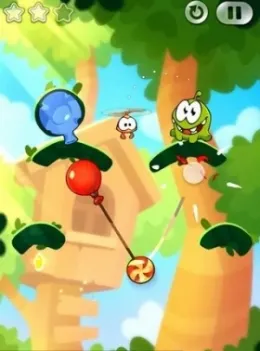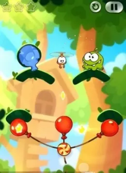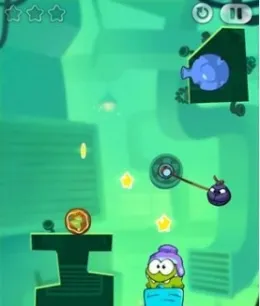 4.只要对准一直在糖果旁边绕的星星割断糖果绳子就能过关啦!