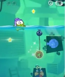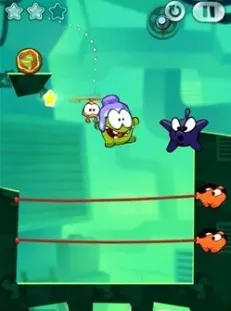 2、割断糖果左边的绳子吃掉中间一颗星星。