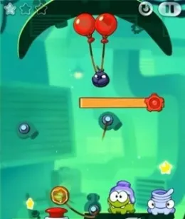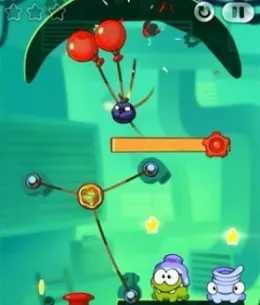 4、割断惊吓球的绳子,掉下来后把小怪兽弹到右边吃掉星星。