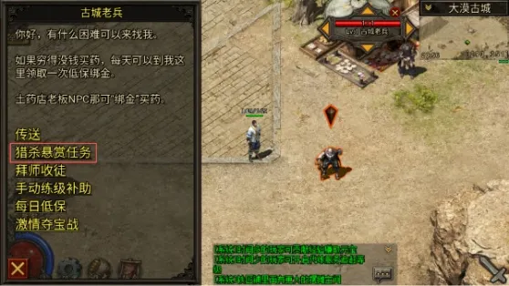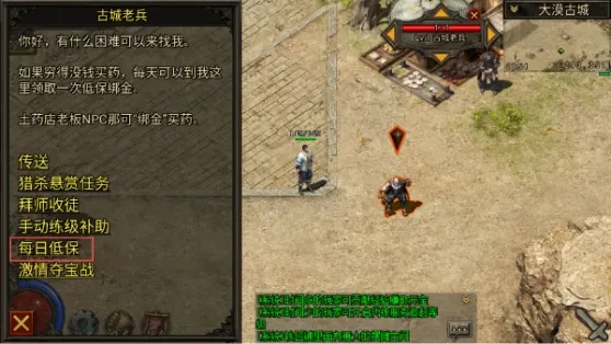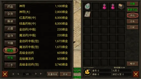 2.领了论坛礼包以后勇士们可以去老兵处继续领取每日低保,几万绑定金币,点"背包"→“商店”→“绑金”,绑定金币可以买药,随机卷,毒,符。