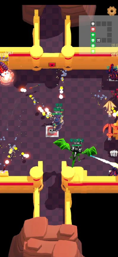3、操作简单却富有策略,一个按键,单手即可操作。别看简单,你需要通过走位实现聚怪、拉怪,躲避机关,躲避技能;你可以控制射向走A,也可以极限射距定A;可以击碎破坏物获得状态增益、召唤神龙;也可以躲入草丛回血,并出其不意一举毙敌;也可以将怪物引入陷阱直接坑杀;这一切都看你的选择!