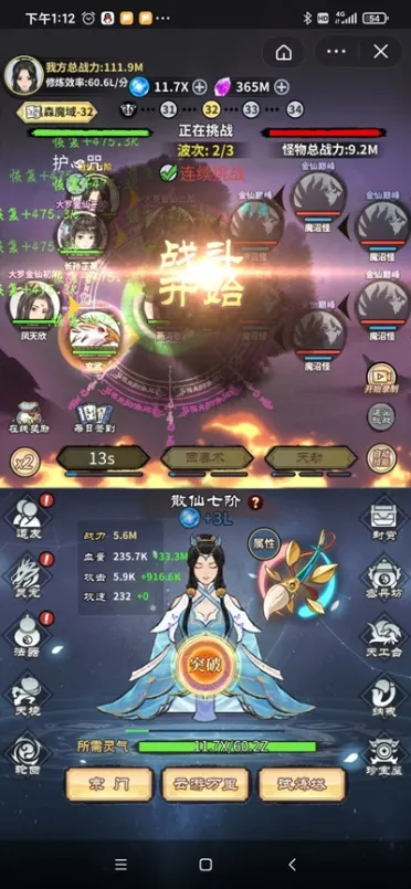 在玩法上我们选择了挂机放置的玩法,修仙之路漫长,处在现实世界的我们未必有与之相当的时间,所以我们希望大家能够利用更加碎片化的时间,来满足大家修仙的愿望。