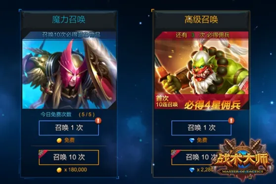 在危机四伏的魔兽世界中,到处都潜伏着许多凶险的敌人,所以要想进行更好的冒险,在旅途中寻找几个并肩作战的佣兵伙伴,是必不可少的。所以在祭坛的抽卡界面中,玩家每天都可以在这里获得免费抽卡的机会。除了抽取一些经验药水和重要材料以外,幸运的玩家们,还可以抽取到佣兵碎片或者整个佣兵英雄,但是免费的次数是有时间限制的,各位玩家可不要错过,一旦错过那可是要花费金币或者钻石才能抽取的。