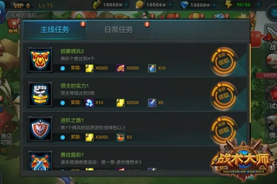 在《战术大师》中,游戏的任务主次分明,分别为主线任务和日常任务,想升级快点的玩家可直接领取日常任务,性格随和比较有耐性的玩家可以做主线任务推进剧情,其实,主线和日常这两个分明得任务是相辅相成的,做日常任务是为了快速升级,升级后提升战斗力,有了战斗力才能在主线进展中更流畅;主线任务的进展需要靠做日常任务提升等级从而提升战斗力来辅助。所以,它们都是每日必做的!