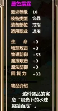 晨色霜霖制作所需材料:魔石碎片×12,铁矿石×2,1500金币