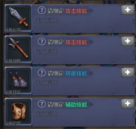技能分为4个大类型,攻击技能,防御技能,辅助技能,通用技能。不同的技能类型,可以绑定到不同的装备上去。通用技能比较特殊,可以绑到任何装备上面。技能通常是被动触发的,比如回合结束,攻击时,受击时,等等。技能是可以更换的,不要害怕绑定错了,装同样类型的技能会顶掉之前的技能,小攻略:训练前期就绑定属性成长的技能,到了后期转型成输出型技能。