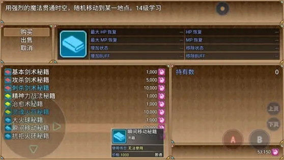 然后可以前往商店购买一套增加攻击力的装备,在书店购买攻杀和刺杀技能书,在杂货店购买大约300个中级金创药。