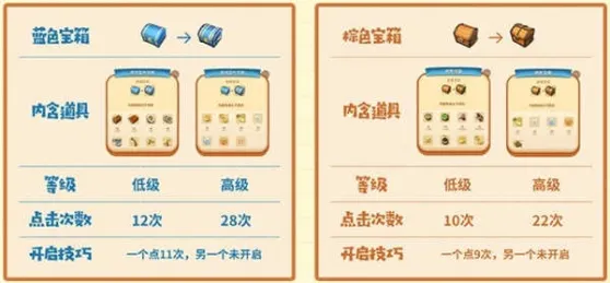 Tips: 当点宝箱剩下最后一次时,可用该颜色宝箱与另一个相同颜色但未开启的宝箱进行合成,届时得到一个全新高级宝箱;