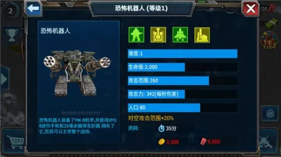 机枪兵,这是一个前期战斗力完爆步兵的兵种,并且消耗资源较少,性价比超高。在游戏前期可以当作地面主力之一,中后期放在机枪碉堡里,你会看到他完美的战斗力!工程师是一个减少损耗的单位,合理利用,可以让你后期天启坦克场场战斗都无损!不仅在战斗过程中,工程师保证天启坦克等地面机械单位的生命恢复,在你离线以后,他还会默默地修理你的受伤坦克,等到你下一次上线以后,你的地面机械单位又会是满血满状态参与战斗,很多时候,一个工程师的价值远远大于几辆天启坦克!恐怖机器人,这是个游戏后期对空能力相当可观的单位,无论是防御还是进攻,它的存在对步兵对空中都是一大杀手!