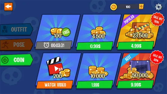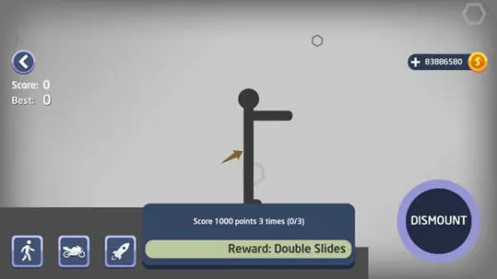 4、期间火柴人每次受到撞击都会获得一定分数,最后根据得到的总分来计算金币收益。
