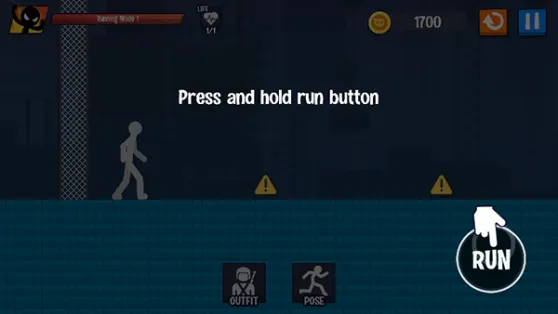 3、松手后,火柴人就会按照箭头方向跌落楼梯。