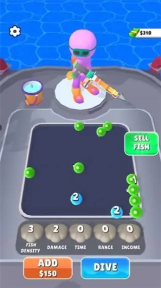1、开始游戏后,你将扮演一位潜水员,在深海中捕猎各种珍稀海洋生物。