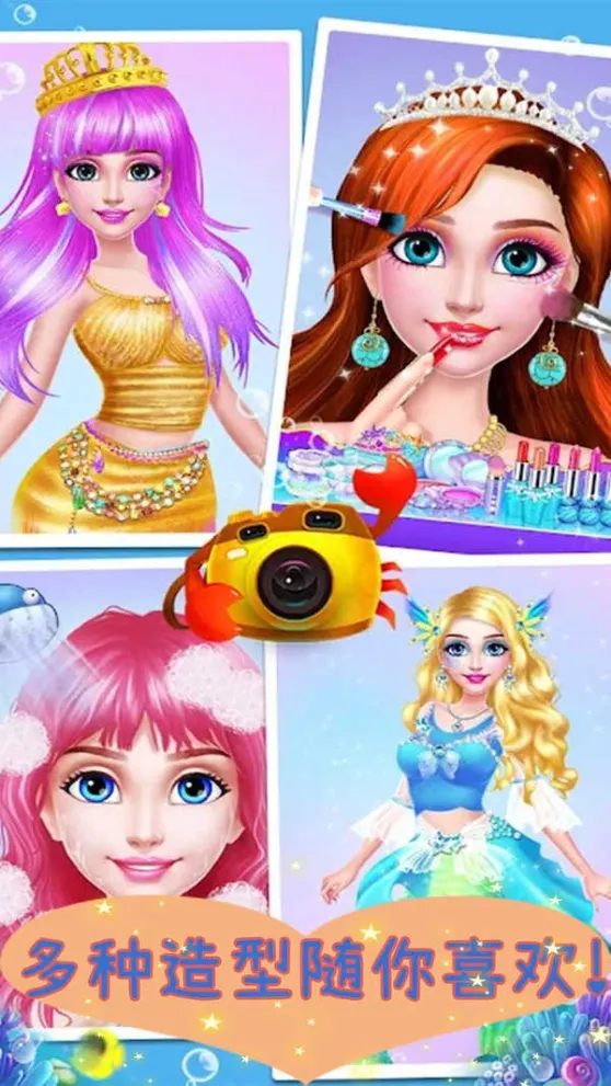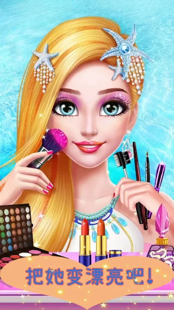 1、与可爱的美人鱼公主一起学习化妆技巧,创造出迷人的海底造型。