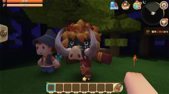 其次就是这一类游戏最大的主要内容:生存!在游戏的一开始你需要先收集一些基本的资源,制造一些简单的工具。最首要的就是砍树。方法就是找到一棵树,将屏幕的中心对准树干长按屏幕,然后触碰掉落的木块,就会获得一些木材。再将这些木材制作成基本的工具。比如可以用来防身的木剑、可以加快砍树的木斧、可以加快挖矿的木镐等等,都可以让你在前期的资源收集中提高非常多的效率,领先其他玩家。在收集足够的材料时,你也要记得用木剑猎取一些小动物,可以获得皮毛和肉,前者以后可以做衣服,而生肉则是前期重要的食物来源。也要用多余的木材建造一个工作台,可以制作更复杂的一些道具。