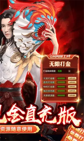 ★开局福利:充值比例1:100000!上线送满SVIP、全套红装、10万仙玉、1亿元宝、5亿银币、极品称号、华丽翅膀