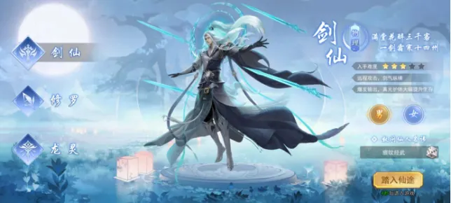 剑仙是游戏中的物理型职业,擅长操纵剑气远程攻击,入手难度较为简单,适合新手,技能偏向爆发输出,同时又有真元护体大幅提升生存,攻守兼备!