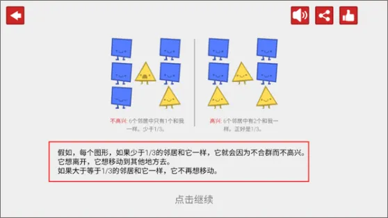 偏见手游官方版是一款可爱的分离模拟器,展示了人们之间的小差异如何引发偏见,并教导我们如何使混乱恢复和谐。这款游戏的创意源自Nicky Case和Vi Hart的诺贝尔经济学理论作品,包括《多边形的故事》(Parable of the Polygons)及有关小三角和小方块的故事。