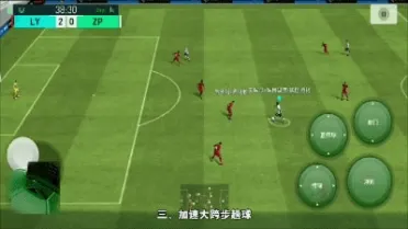 这种大跨步趟球因为球离的较远,有一定的风险,但是在边路超车的时候特别适用。注意要使用爆发力比较强的球员,比如美羊羊、c罗。使用时观察对方的施压方向,在抢的一瞬间往施压方向大跨步趟球。