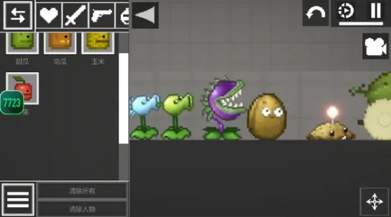 3、点击打开物品栏,玩家可以添加甜瓜人、玉米人、桌子,以及装备手枪、放置炸药等。