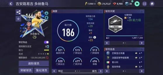 年度多纳鲁马,虽然多纳鲁马欧冠被本泽虎降智打击,但不可否认的是他仍是世界第一门将的强力竞争者,年轻的多纳鲁马需要更多的经验,成长为超越布冯的存在。推荐:光荣岁月舒梅切尔、四周年切赫(零冲党狂喜,38天即可拥有星星球员还是比较少的门将,能力数值高,模型优秀)