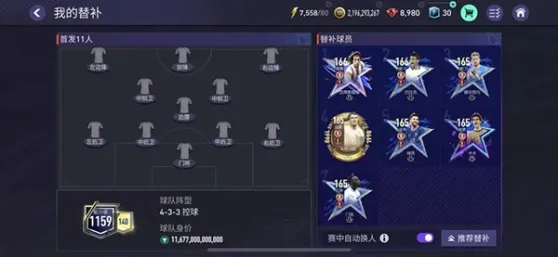替补阵容同样星味十足,战神、巴拉克、丁丁、马特乌斯、梅西、卡卡、门迪,德罗巴放在另一个阵容(用下来现版本的德罗巴还是要比巴蒂强一些的,9阶后的巴蒂才是真正的战神)