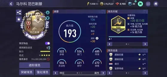 光荣岁月典藏范巴斯滕,能力值更新至2023年4月,和限定罗纳尔多同级球员,基础能力值貌似略高于限定大罗,范巴斯滕也是笔者非常喜爱的锋线球员,进攻能力非常强,游戏内射门精准,劲爆,面板数据当下T0级别,限定球员推荐大罗(氪佬,无须多言)、德罗巴(就没见过魔兽虚过,游戏现实亦是如此,猛的一批)、四周年之星伊布(具体表现未知,按照以往的伊布,应该表现不俗)、年度哈兰德(常见强力前锋)、白色情人节巴蒂(神经刀,进阶越高越强,总感觉没有之前推出的星星巴蒂那么惊艳)