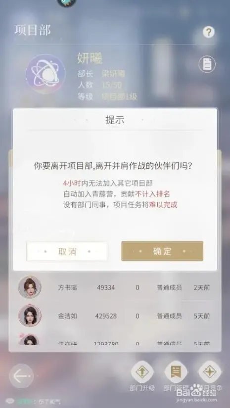 5、退出项目部的话在指定时间内就无法加入到其它项目部了,如果确定要退出的话,再次确认就可以了