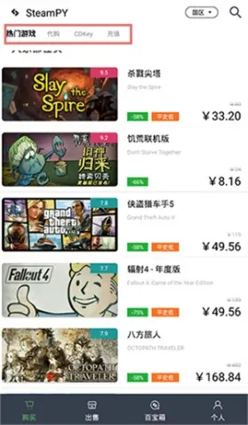 SteamPY手机中文版是一款专为Steam平台游戏交易设计的在线交易平台。这里汇集了Steam上的各种游戏类型,众多用户上传并低价出售自己的CDK,让你能以最低的价格获得心仪的游戏!该应用依托于Steam平台,为用户提供多种便捷功能,如余额查询和代购额度查看等。有需求的朋友一定不要错过!