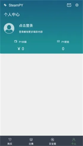 1、在本站下载安装此app,运行软件,可以看到有购买、出售、百宝箱、个人四个板块;