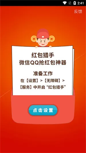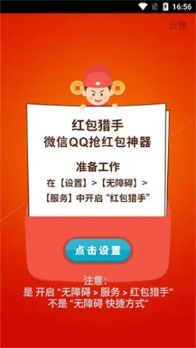 开启自动抢红包服务,红包捕手将全程监控红包消息,绝不遗漏任何一个红包。