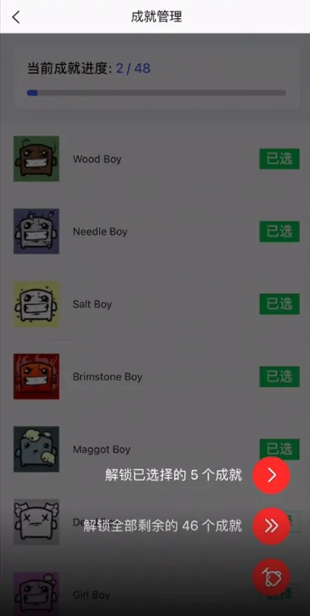 查看时点击查看按钮即可进入管理成就页面中进行选择需要解锁的成就进行解锁操作