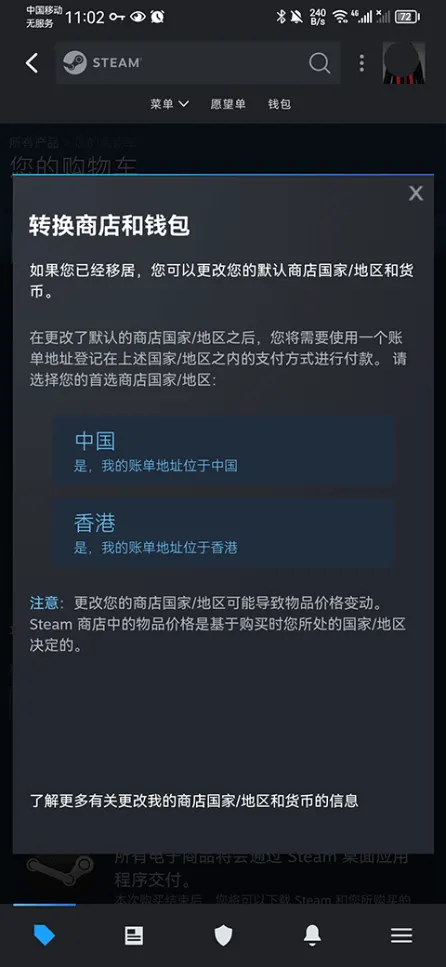 5、最后确认更改即可,同时Steam国家地区更改也是以上操作步骤