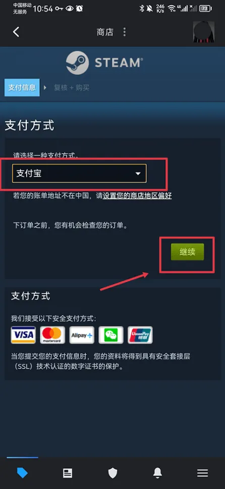 4、接着选择一种支付方式后,例如支付宝,然后点击继续