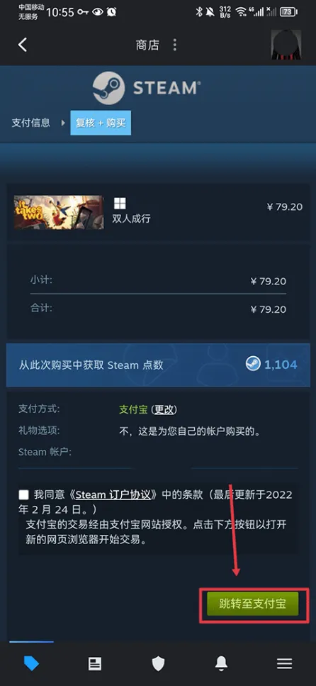 5、最后点击跳转至支付宝并完成支付即可