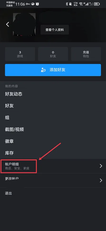2、进入后点击账户明细