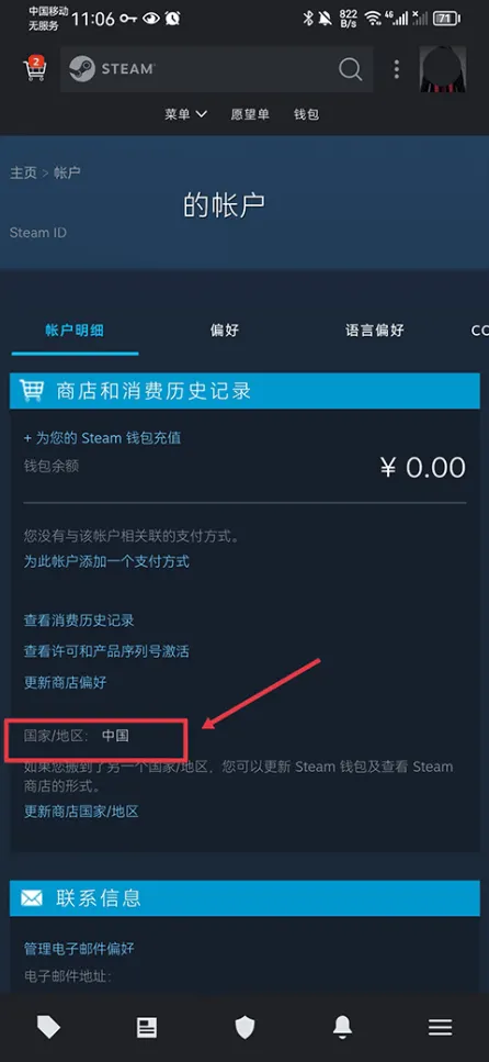 3、然后在商店和消费记录中会显示国家/地区,若用户显示的不是中国时,可以通过购买游戏来进行切换