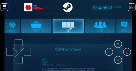 5、连接之后,Steam会以大屏幕形式展现,如果你的移动设备连接手柄就可以直接使用手柄开始游玩,如果没有,Steam也是准备了一套虚拟的按键供你体验。注意,不能关闭电脑哦。