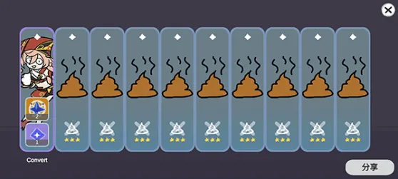 2、作为同人二创手游,游戏画风十分鬼畜有趣,抽卡后点击右下角还可生成图片分享给好友